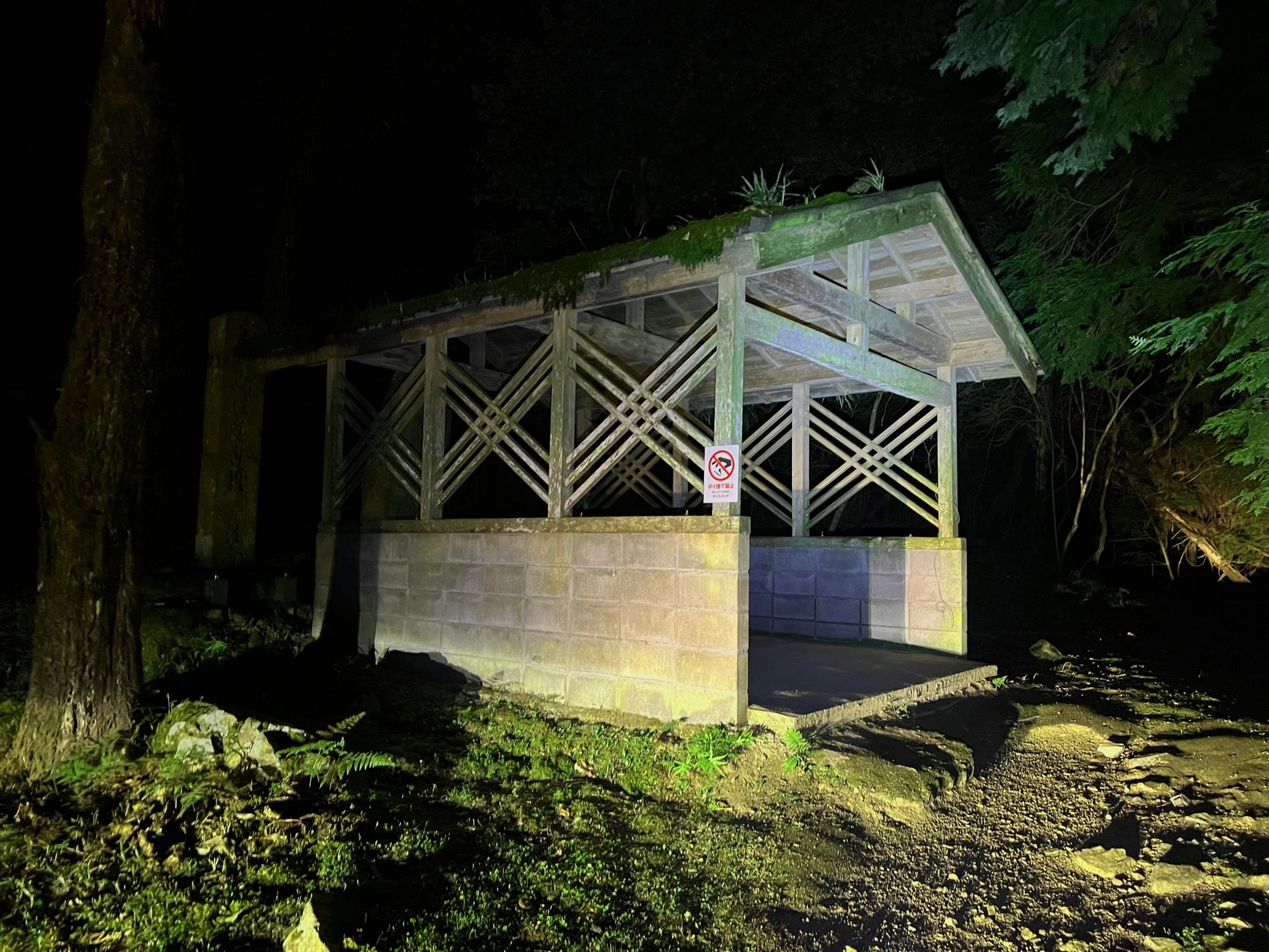 - 足場の悪さ:周辺は整備されておらず、特に夜間はぬかるみや木の根で転倒する危険があります。